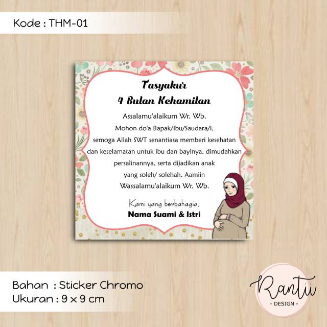 Stiker label syukuran 4 bulanan. Tasyakuran 7 bulan usia kehamilan ms lomar. Usai mengumumkan kehamilan buah hati pertamanya pada 16 februari, margin wieheerm menggelar acara syukuran empat bulanan. Bulan ini baru sekali saya posting, maaf buat sobat yang udah nunggu update settingan . Stiker label syukuran 4 bulanan. Kategori contoh undangan 7 bulanan kehamilan meliputi:: Biaya syukuran 4 bulan kehamilan jet on vacation. Apakah anda mencari gambar tentang stiker syukuran 4 bulanan? Jual stiker label acara syukuran 4 bulan . Cetak stiker label syukuran 4 dan 7 bulanan murah. Bisa cetak art carton 260 gram (kartu tebal) atau cts 150 gram (kertas kalender mengkilap) jual stiker label syukuran 4 bulanan. Sticker label syukuran kehamlan 4 bulanan. Ketemu lagi nih sob, dipostingan ini kami akan berbagi informasi keren seputar contoh stiker syukuran 4 bulanan kehamilan.